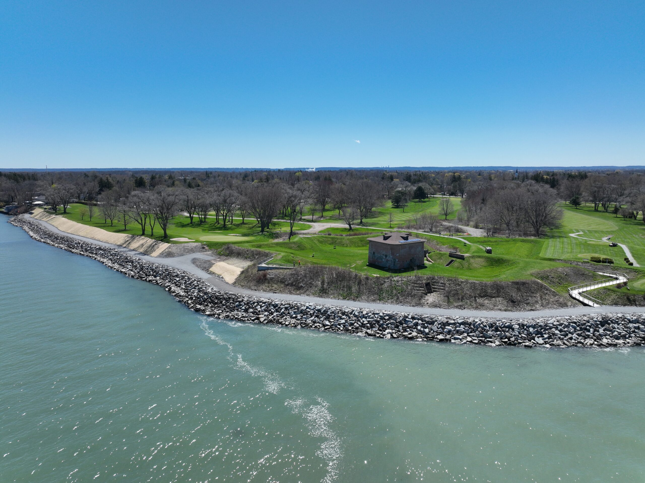 The shoreline at Fort Mississauga was strengthened with robust erosion control and landscaping, ensuring the historic site’s longevity while creating a scenic, inviting area for visitors to enjoy.