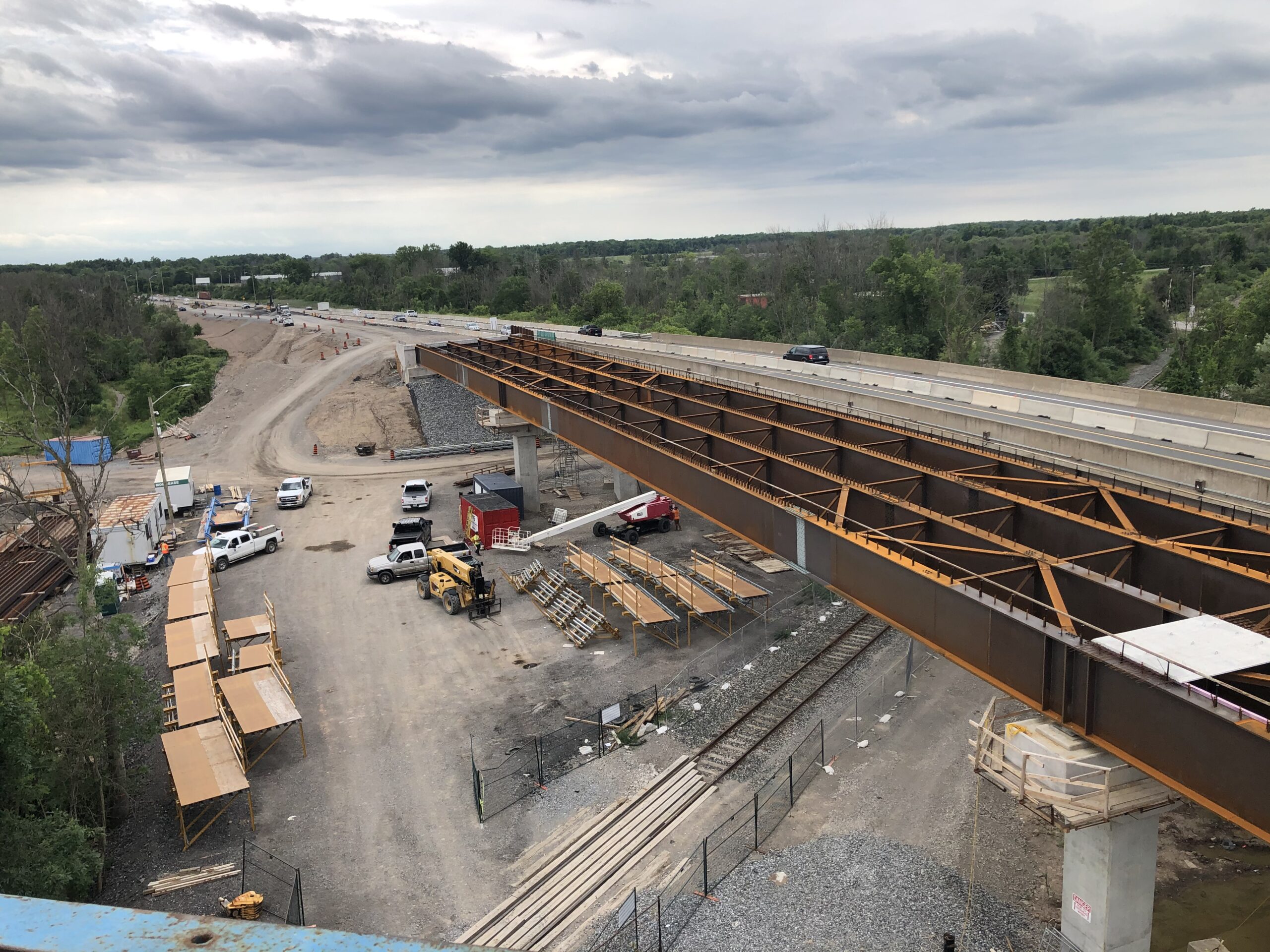 To facilitate the construction of the new structures, while ensuring vehicular traffic was maintained througout, staging of the demolition and construction was installed. Within the first construction season, the Toronto Bound structure was removed and reconstructed, while crossing over traffic into a reduced lane pattern, allowing one-lane of traffic to travel on the Fort Erie bound structure. During the next construction season, the remaining structure was replaced in the opposite configuration. Lastly, during the final construction season, the tie-in structure was completed, including the roadway realignment.